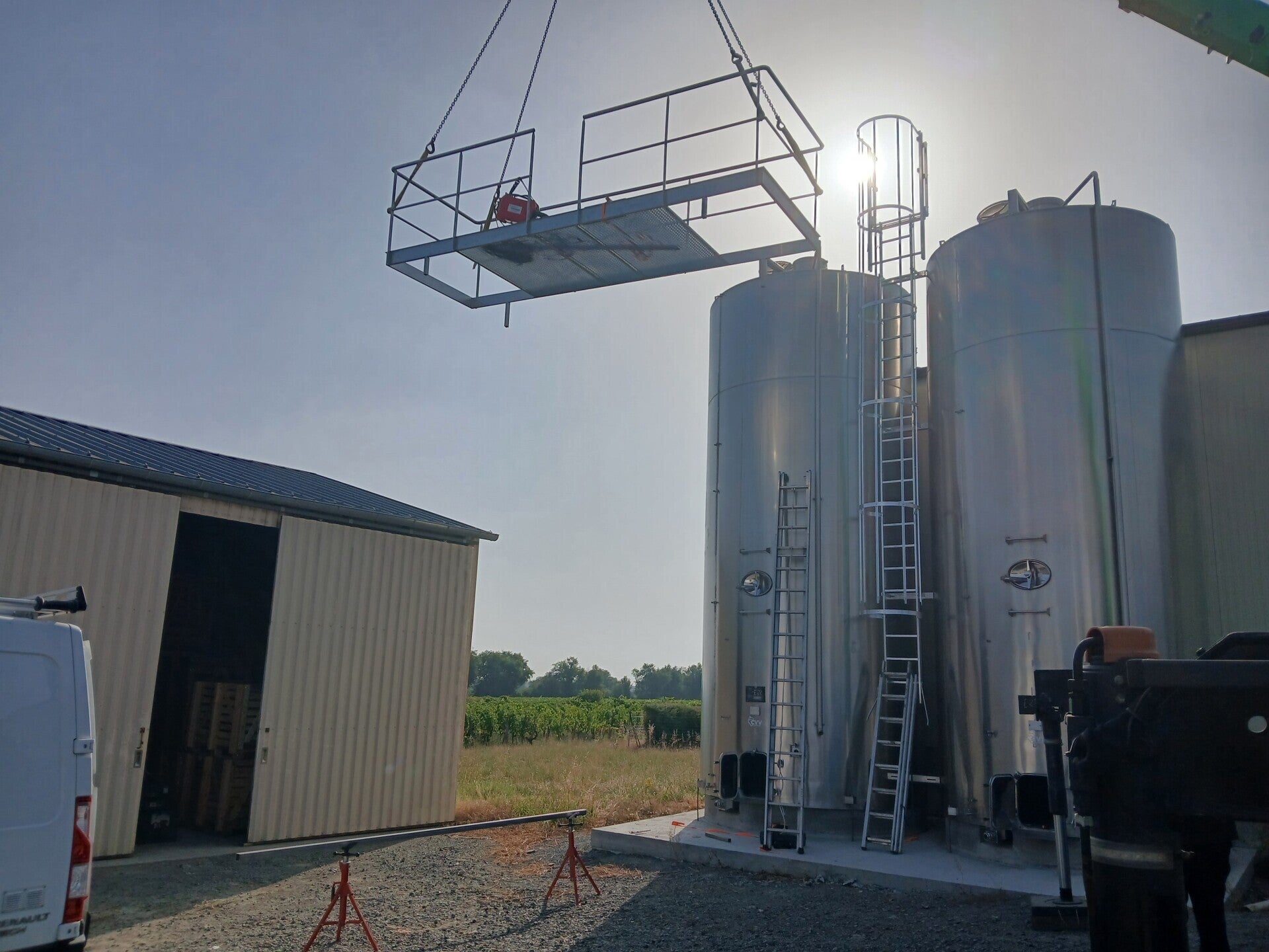 Réalisation et pose par grutage d'une passerelle inox sur Cuve.